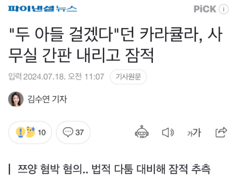 [2] NATE - "๋ ์๋ค ๊ฑธ๊ฒ ๋ค"๋ ์นด๋ผํ๋ผ, ์ฌ๋ฌด์ค ๊ฐํ ๋ด๋ฆฌ๊ณ ์ ์ (https://m.news.nate.com/view/20240718n14293)