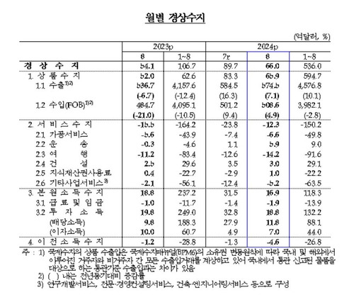 - ํ์ ๊ท๋ชจ: 2024๋ 8์ ๊ฒฝ์์์ง๋ 66์ต ๋ฌ๋ฌ๋ก, ์ด๋ 2021๋ ์ดํ 3๋ ๋ง์ ์ต๋์น์ ๋๋ค.