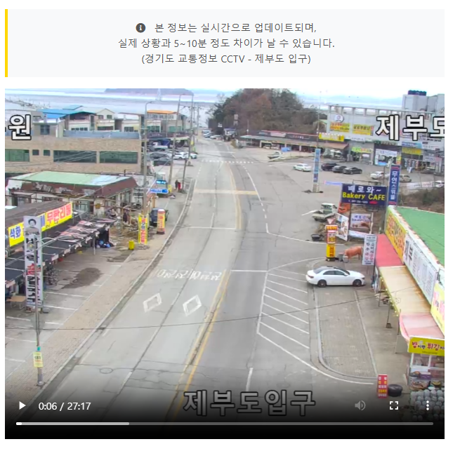 ์ ๋ถ๋์์๋ ์ ๋ถ๋CCTV๋ฅผ ํตํด ๋ฐ๋ท๊ธธ์ ์ค์๊ฐ ์ํฉ์ ํ์ธํ ์ ์๋ ๊ธฐ๋ฅ๋ ์ ๊ณตํฉ๋๋ค. CCTV ํ๋ฉด์ ํตํด ์ ๋ถ๋์ ์ค์ ๋ก ๋ฐ๋ท๊ธธ์ด ์ด๋ฆฌ๊ณ ์๋์ง ํ์ธํ๋ฉฐ, ๋ฐ๋ท๊ธธ์ ์ํ๋ฅผ ํ๋์ ์ดํด๋ณผ ์ ์์ต๋๋ค.